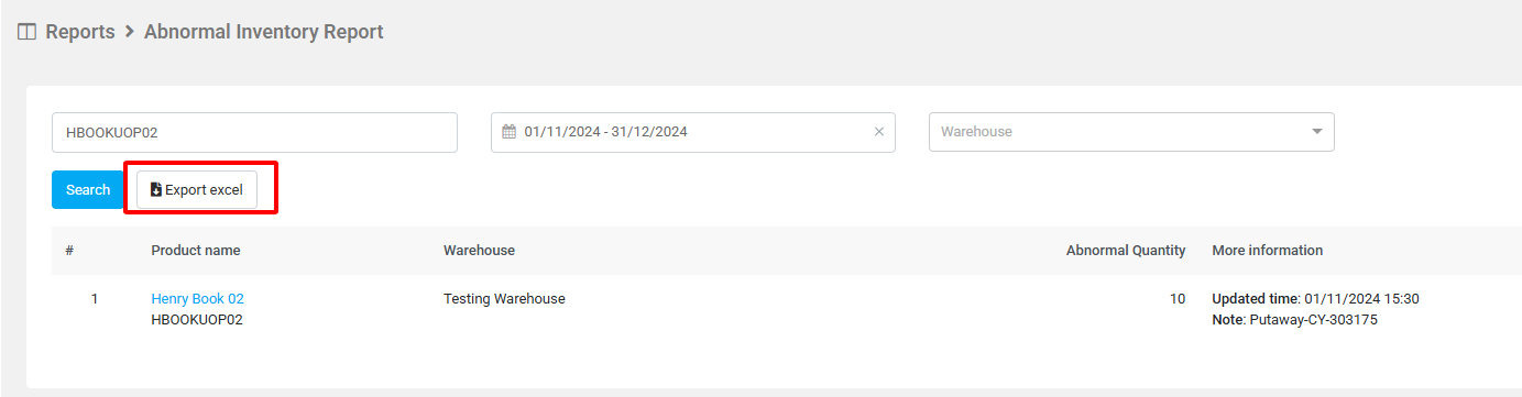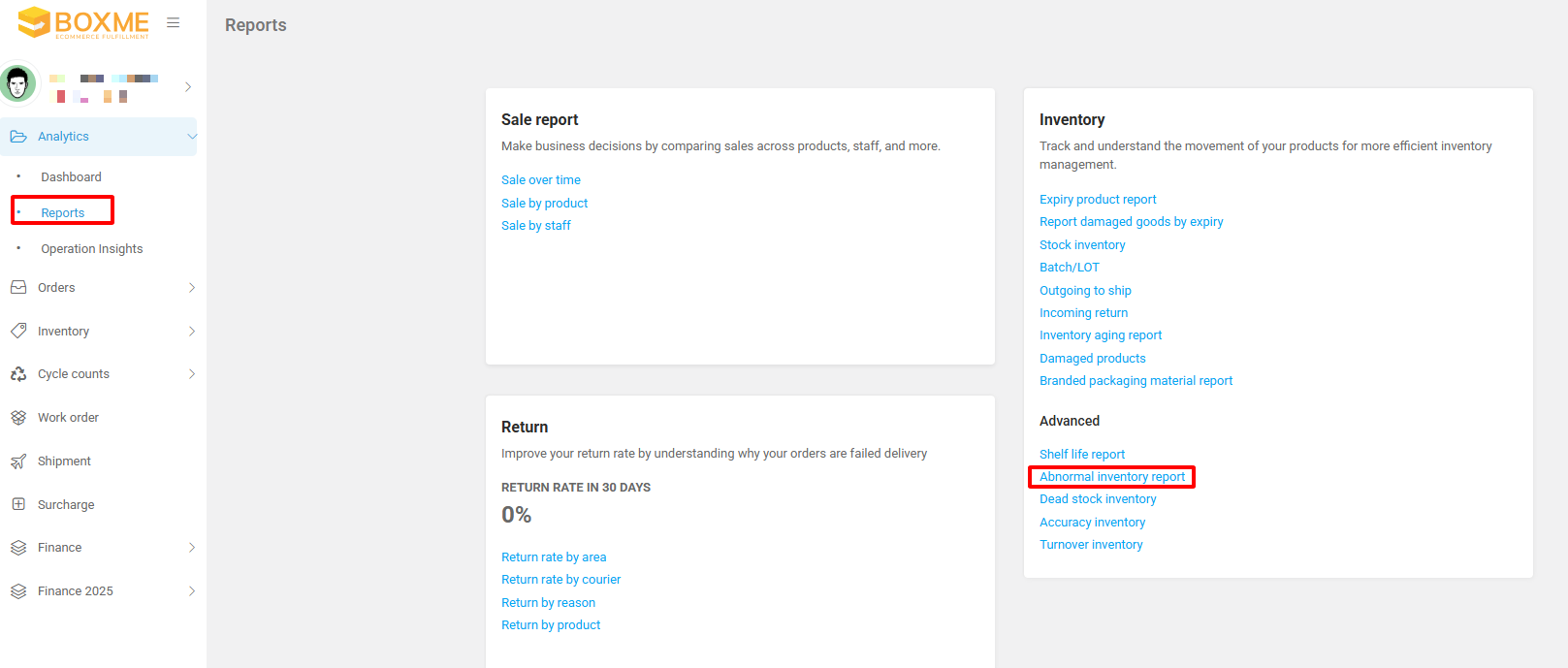 - Navigate to the “Reports” tab and select “Abnormal Inventory report.”