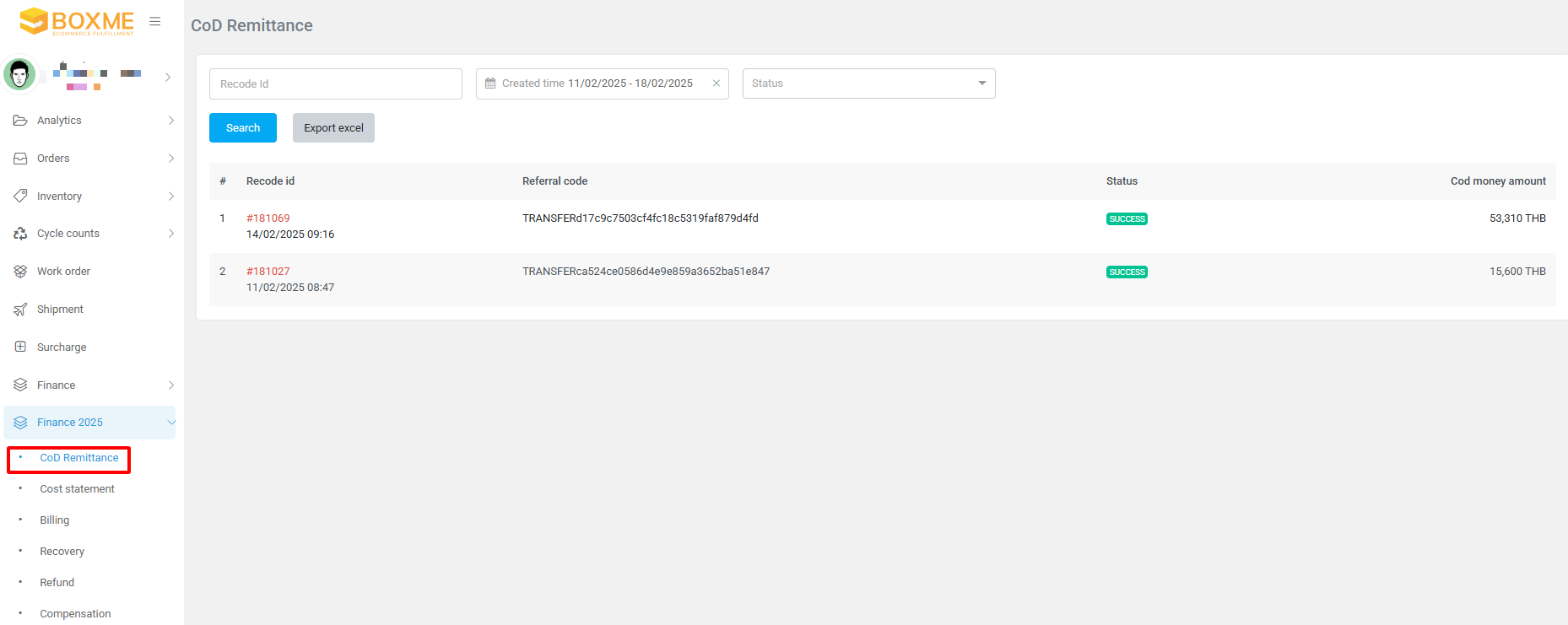 Additional, Boxme provides cash on delivery service for orders nationwide, automatically reconciling and paying sellers. When creating a B2C order, sellers only need to fill in the amount to be collected in the Total CoD amount box. Boxme will record the collected amount and send the information to the shipping company for processing. COD money will be automatically reconciled according to the COD Remittance list in the Finance 2025 section. Sellers can send a request via email or ticket to Boxme to receive COD payment to the bank account configured on the OMS system.