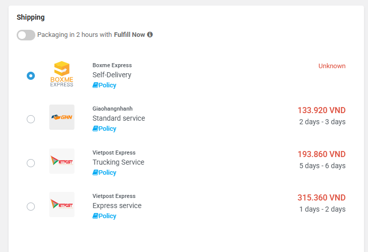 For customers using Boxme’s shipping services, depending on the needs of the buyer/order, the system will automatically select the optimal service and ensure delivery requirements according to the committed time