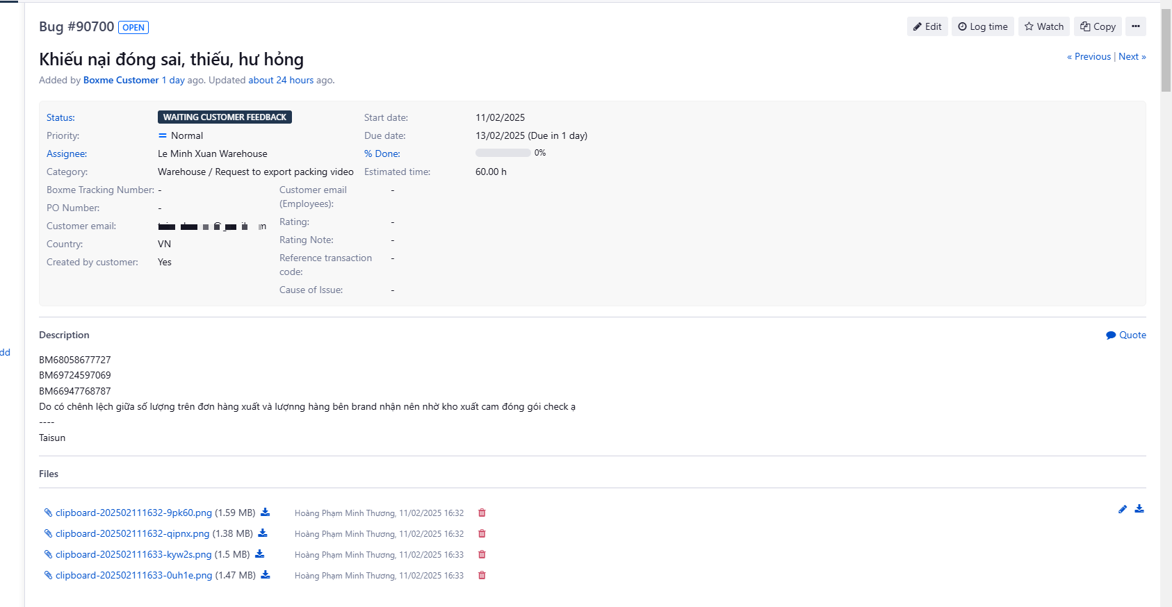 - Updates & resolutions will be provided through the Boxme ticket system.
