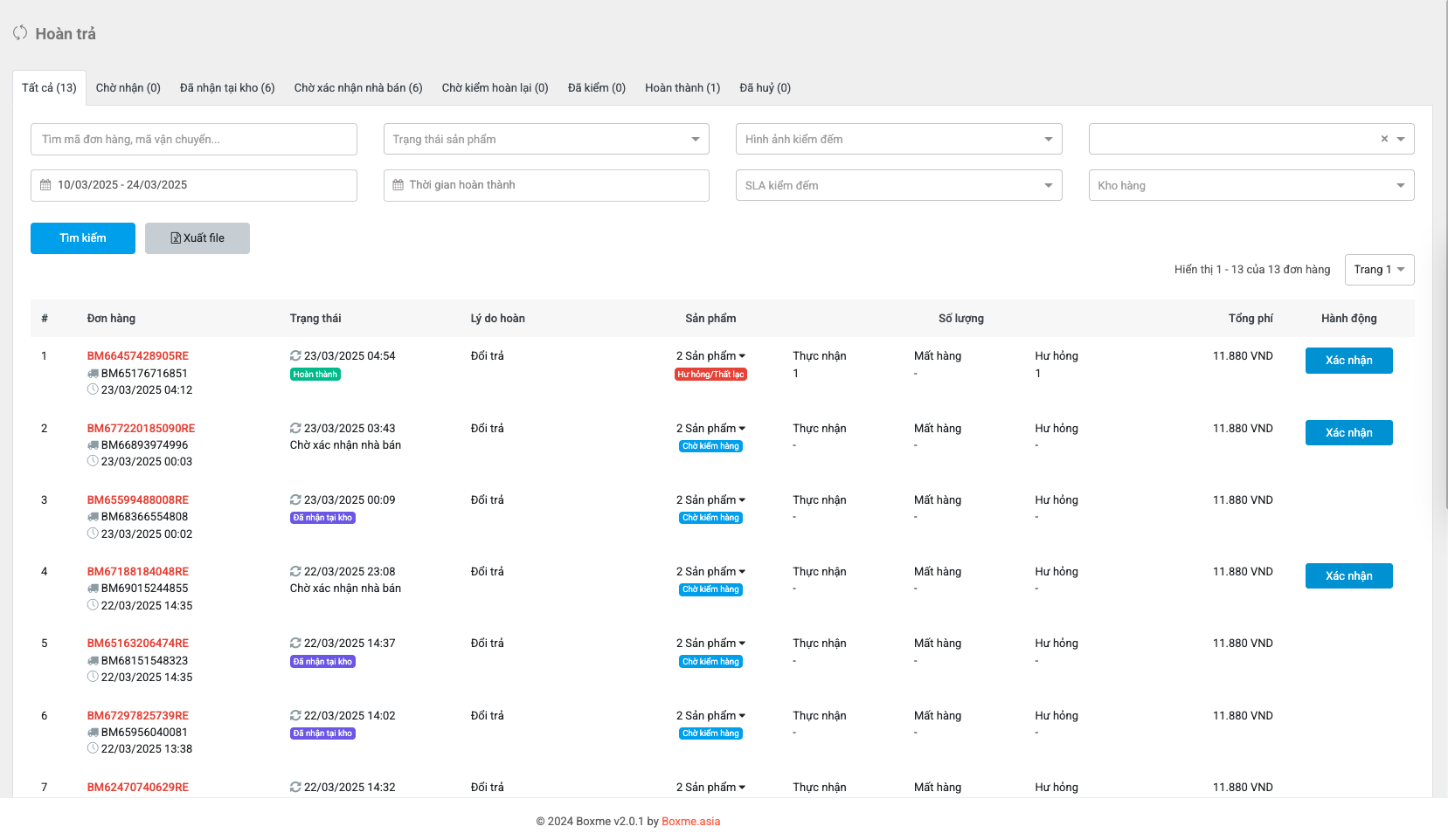 After quality checking (QC) if any product in the return order is found to be problematic (damaged, counterfeit, lost or missing product), the order will be transferred to the status Waiting for seller confirmation .