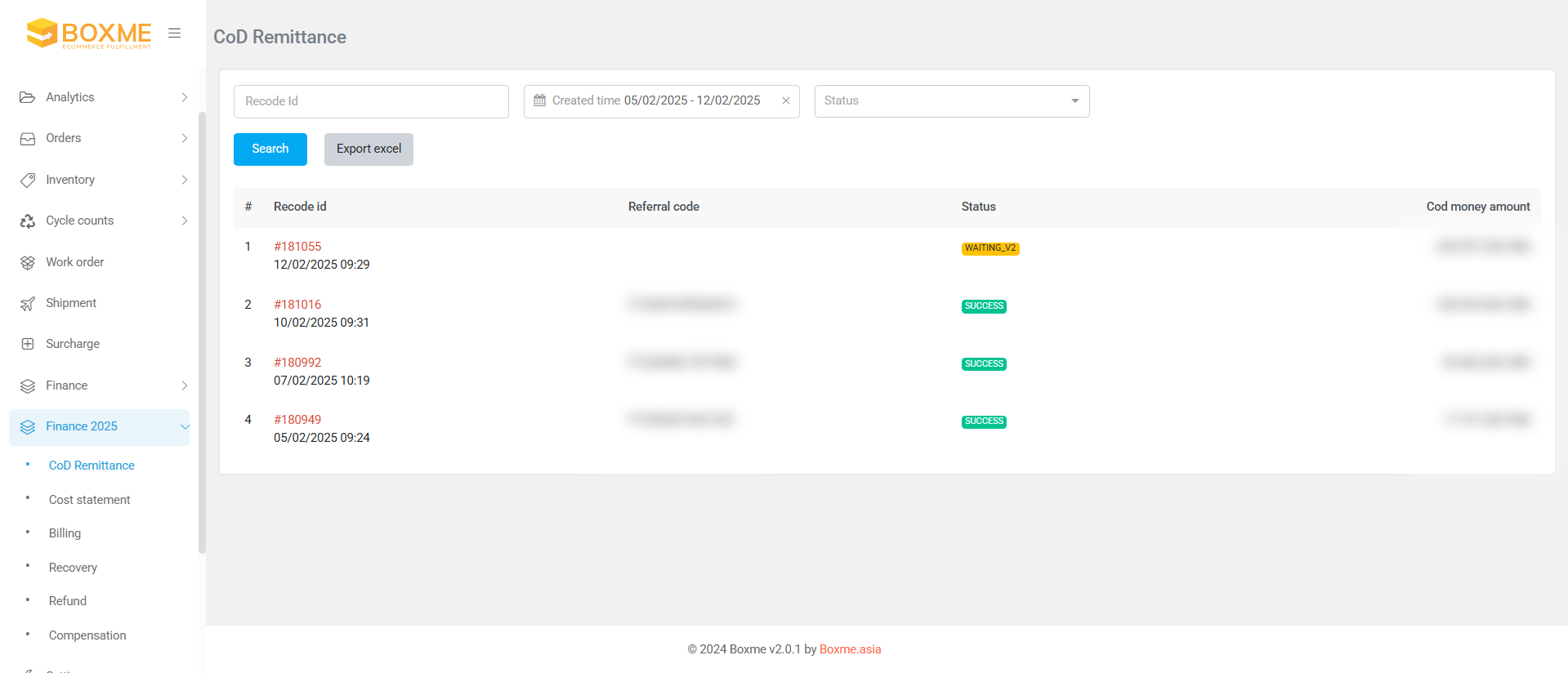 Boxme reconciles and disburses CoD payments every Monday and Friday, following this schedule: