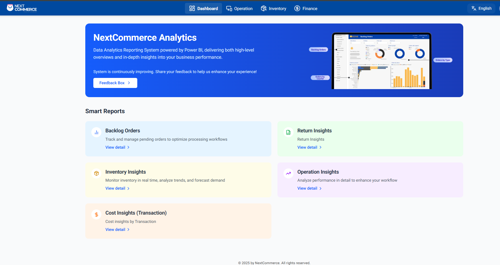 Welcome the customer to Nextcommerce Insights – an intuitive and in-depth reporting platform that helps you monitor, analyze, and make more effective operational decisions throughout the entire supply chain.