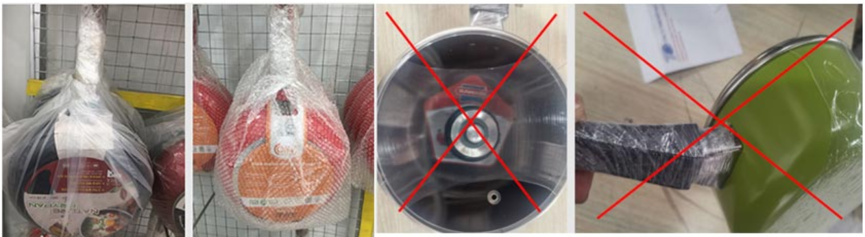 - Products must be tightly wrapped in bubble wrap or PE film (at least two layers) to prevent exposure, including handles of pans, pots, etc.